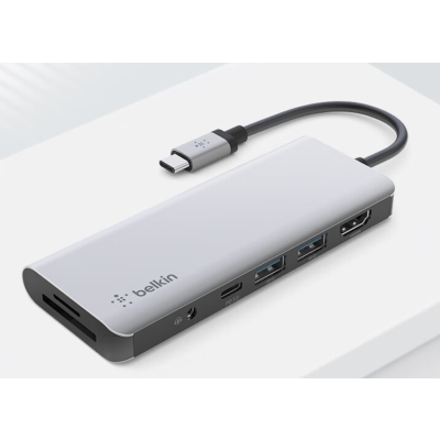 贝尔金(BELKIN)Type-C扩展坞 高效7合1拓展 iPad苹果电脑转接 PD供电100W 笔记本HDMI投屏 USB/SD读卡 兼容雷电口