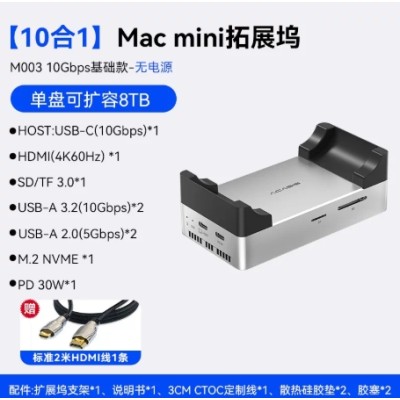 阿卡西斯macmini拓展坞40Gbps适用于苹果电脑M4/M4Pro M.2固态硬盘盒DIY扩容8TB风扇散热usb多接口扩展坞底座