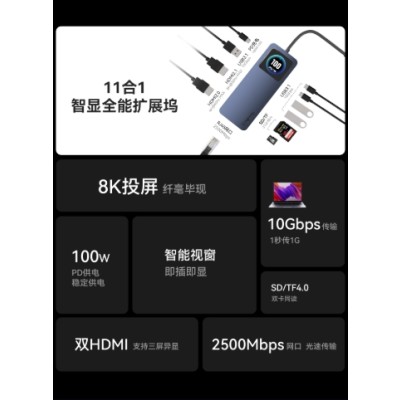 HIGHSAY海赛力HM11 Ultra智能屏显8K双投屏扩展坞hdmi超清拓展10Gbps手机游戏本苹果电脑macbook快充转换器