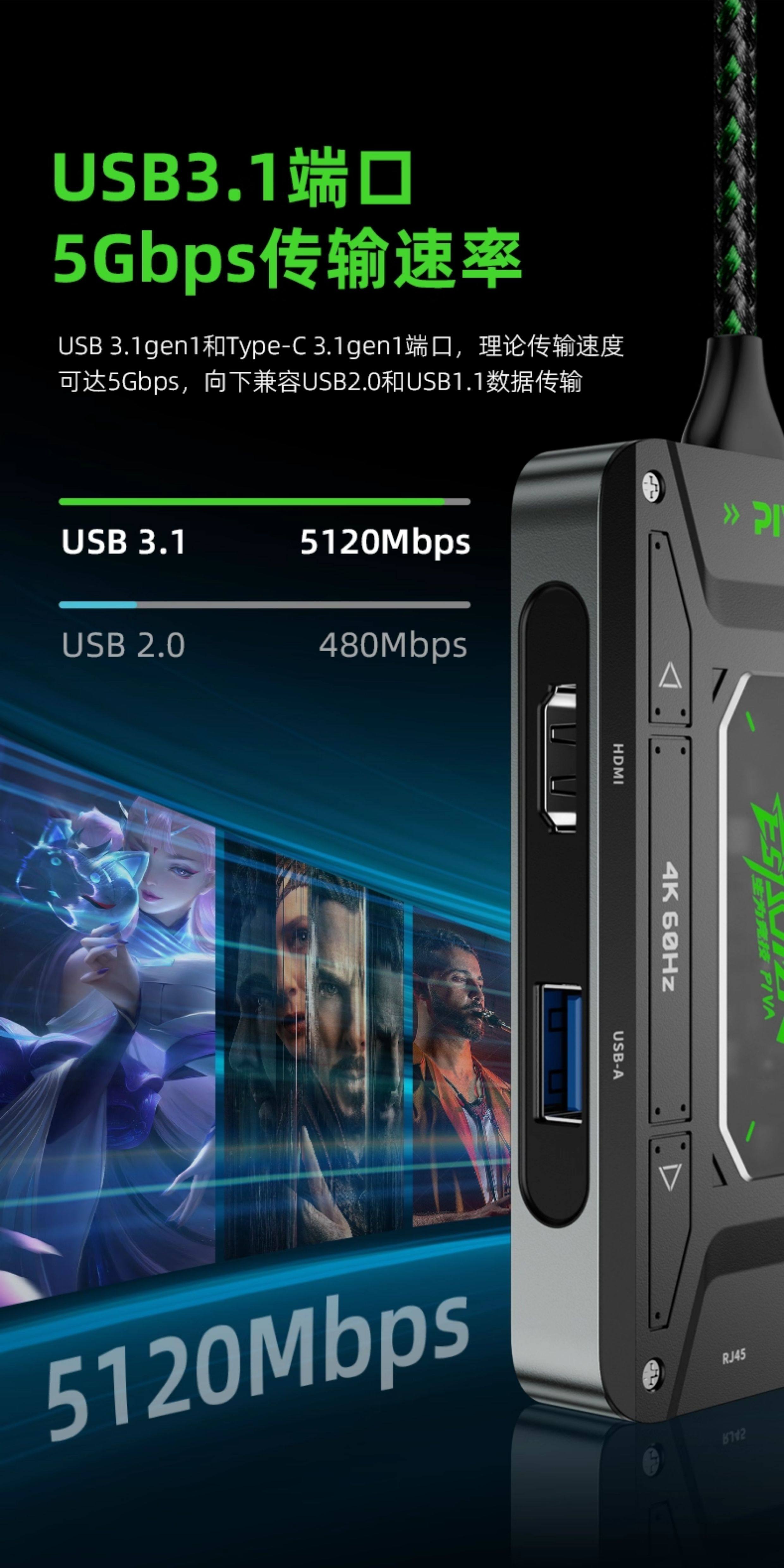 piva派威ds7扩展坞Typec转换USB转接器适用笔记本电脑ipad平板手机拓展坞hdmi投屏分线器USB扩展器网口转接头